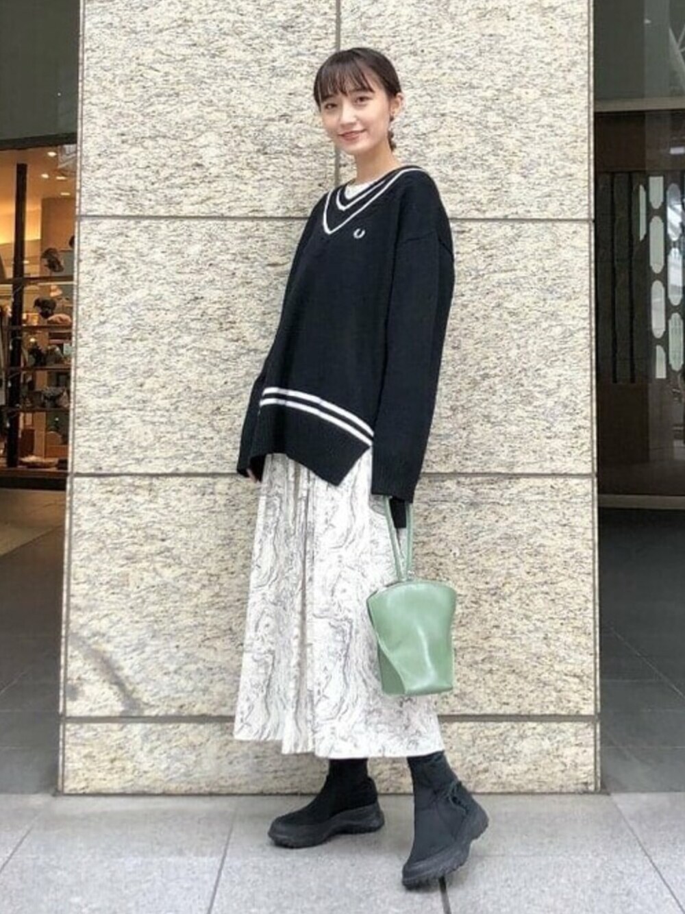 <FRED PERRY>のニットはゆったりサイズでレイヤードし易いです♪サイドからのシルエットも可愛い☆