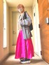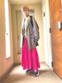 ロンハーマンで一目惚れしたリネンのスカートはウェストからヒップへのはぎ方が絶妙でロングスカートだけど細見えで得した気分 ジャケットのチェック柄にほんのり入ってるピンクとリンクさせます