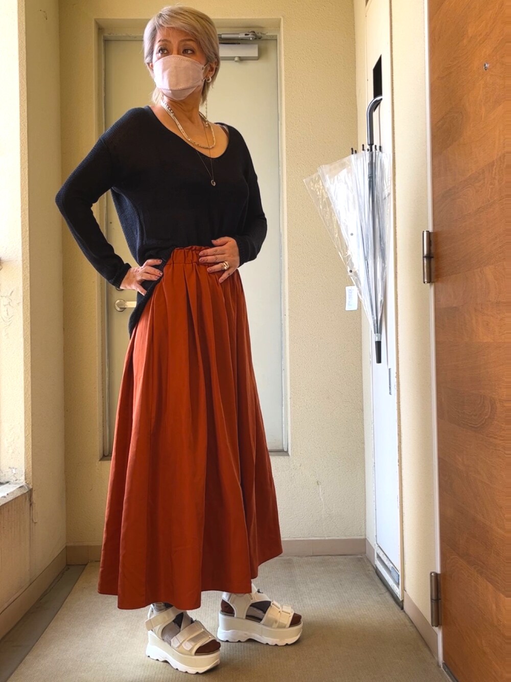 オレンジとネイビーの組み合わせに白を入れて春らしくしてみました オレンジは好きだけど似合わない色なので、顔から遠いボトムスで取り入れます