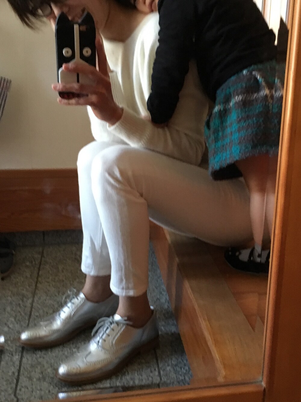 念願のシルバーシューズをゲットしたので オールホワイトのアクセントにしてみました! にしても田舎じゃオールホワイトは目立ちすぎる…