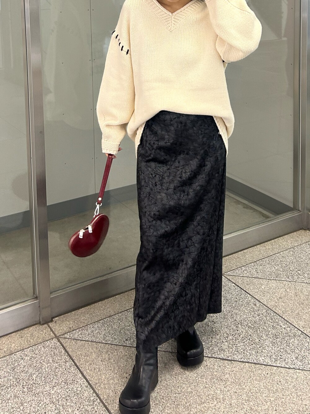 【トップス】 ロゴジャガードチュニックワンピ ・カラーがたくさんあってどれも可愛い🥺 前後逆で着れるのもオススメです🎀 【スカート】 クラッシック箔タイトスカート •前後2wayで履けます◯ タイトなのでタートルネックと合わせて大人っぽく、大きめのニットをインしてメリハリをつけてあげるとウエストラインがすっきりします🌟