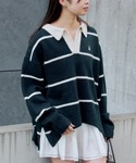 RAYCASSIN_official(RAYCASSIN EC本部)のニット/セーター「【新色追加/チクチクしないニット】ボーダースキッパーポロ刺繍ニット」を使ったコーディネート