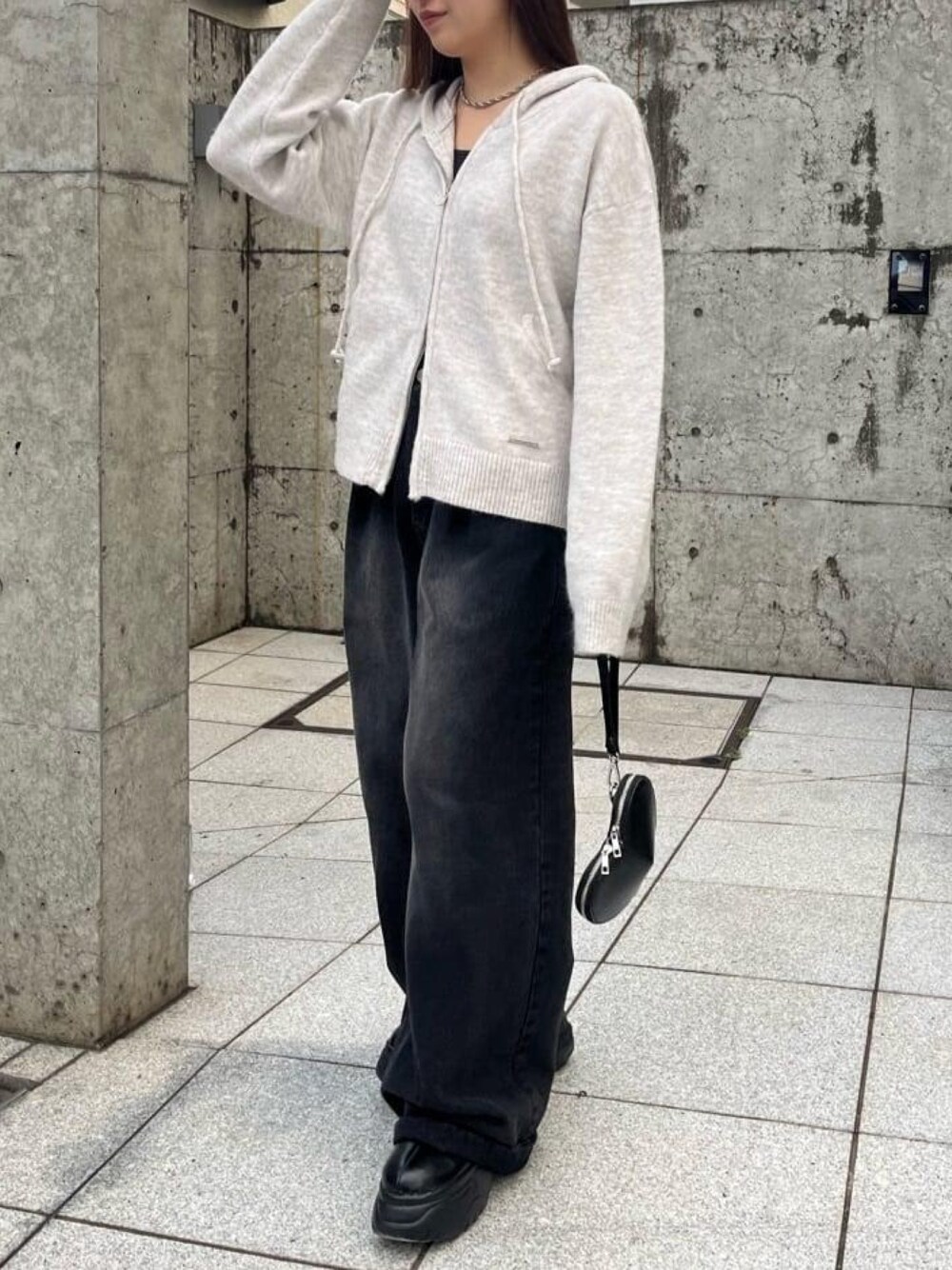 【トップス】 もちっとした素材感で、着心地抜群〇 チクチク感ゼロ! ダブルジップで自分好みの形にして着用できます◎ 【ボトムス】 褪せた色味が可愛いヴィンテージ風デニム シルエット感も綺麗で、スタイル良く見えます〇 【ブーツ】 厚底感がとにかく盛れる! シンプルでデイリーアイテム間違いなしです!