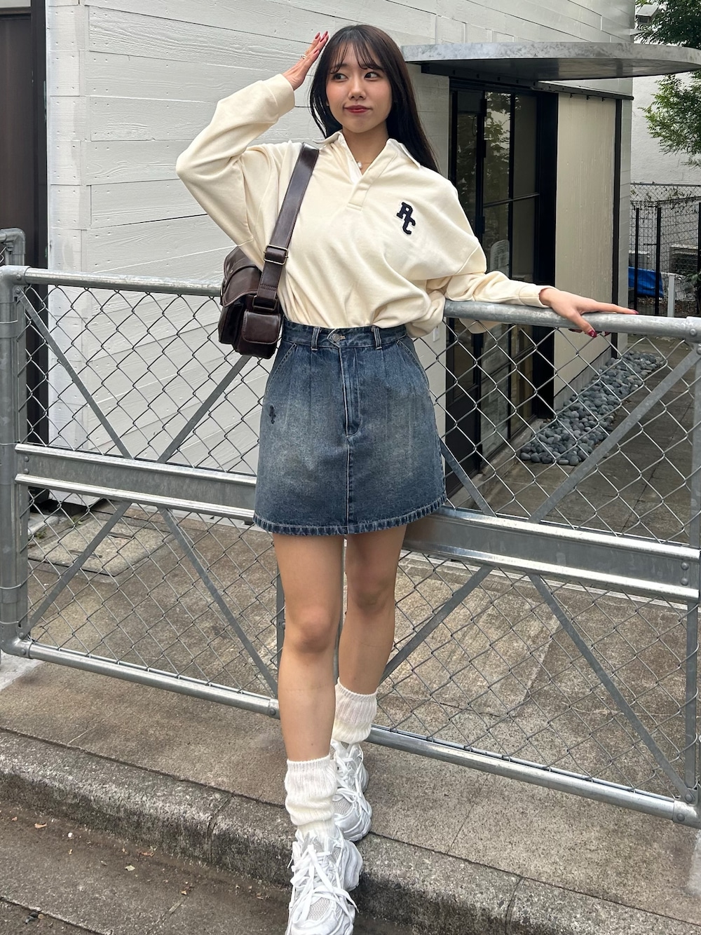 【トップス】 丈が腰あたりまであるので腰回りをカバーできます。 無地でも胸元に刺繍があるので寂しく見えません!! ダボっと見えるシルエットもかわいいです。 【スカート】 このスカート、、めちゃくちゃウエスト細見えします。 ボタンが2段階で止められるのがよく、全骨格爆盛れアイテムです。 【スニーカー】 今の季節から持っておきたいスニーカー。 とても軽く、履くだけでおしゃれに! コーデのワンポイントとして取り入れられます ルーズソックスと合わせてスポーツガーリー風にも〇
