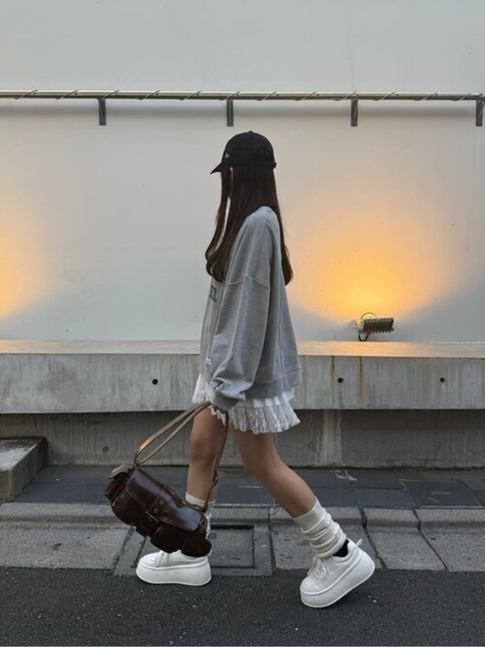 【トップス】color:グレー シンプルなロゴスウェット。 絶妙な丈感でどんなボトムスともバランスのとりやすいアイテム。 生地は柔らかくて着心地が良いです◎ 肩幅ジャストサイズの部分にラインがあるので、上半身の着太りが気になる骨ストさんにおすすめ☝🏻 【スカート】color : ホワイト レースの透け感がかわいいミニスカート。 スカパンになっていて付属のペチパンもあるので、ミニ丈でも安心して着用できます🤍 レースのチクチク感は全く気になりません◎ 【バッグ】 color : ブラウン ポケットデザインが特徴的なバッグ。 500mlのペットボトルもB6サイズの手帳もすっぽり入るのがお気に入りポイントです◎とにかく大容量✦ 付属のチャームもアクセントになってかわいいです🤍