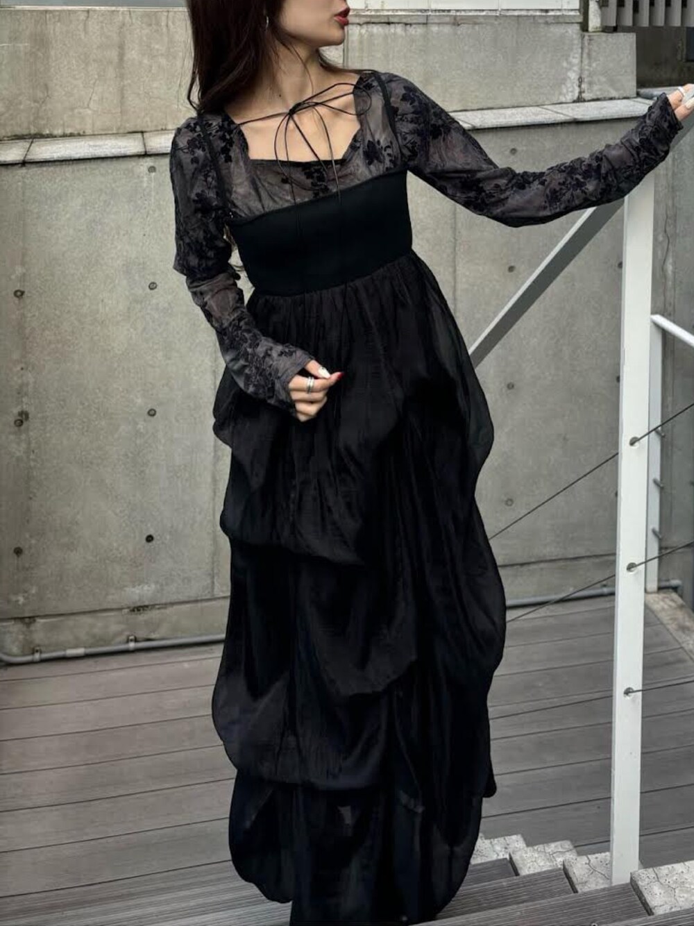 RAYCASSIN_official(RAYCASSIN EC本部)のワンピース「【1枚で主役級】チュールティアードベアワンピース」を使ったコーディネート