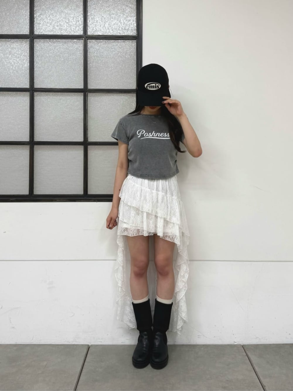 【トップス】 color : チャコールグレー 骨ストの夏には欠かせないチビT。 サイドがギャザーになっていて自然とくびれを作ってくれるデザインなのがお気に入りポイントです★ 【ボトムス】 color : ホワイト トレンドのレースティアードスカート🤍 後ろの部分が長くなっていて下半身の縦ラインが強調されるので、腰回りにボリュームが出るティアードスカートが苦手な骨ストでも綺麗なシルエットで着用できました◎ 【骨スト着痩せポイント】 ・ロゴのトップスはロゴの位置が高すぎると上半身が詰まって見える原因になるので注意⚠️ ・ボトムスはとにかく縦のラインを意識。