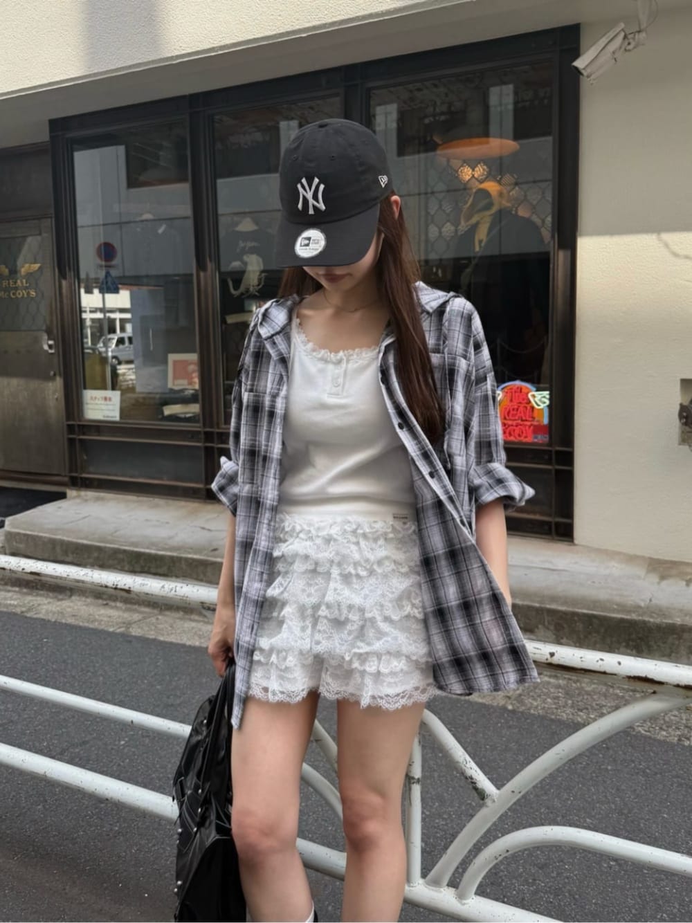 【シャツ】color:ブラック フード付きのチェックシャツ。 薄手の素材なので今の時期の軽い羽織にぴったりです◎ 1枚目のように着用することもできるので、夏まで使える万能なアイテム★ 【インナー】 color : ホワイト 取り外し可能なパット付きのキャミソール。 夏のインナーに大活躍間違いなしです◎ 【ボトムス】 color : ホワイト トレンドのレースパンツ。 カジュアルなアイテムと合わせると甘辛ミックスのコーデに、 甘めなトップスと合わせるとガーリーなコーデに仕上がります❤︎ 腰回りにボリュームが出るので、足が細く見えるのがおすすめポイント★