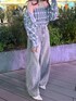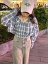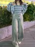 【tops】 涼しげなブルーが目を惹くチェックシャツはビスチェセットで着回しの効くおすすめアイテム!細見えが叶うクロップド丈でハイウエストのボトムスと相性抜群です! 【pants】 ルーズなシルエットがカジュアルコーデにぴったりなデニムパンツ! サイドの切り替えが裾にかけての広がるシルエットを綺麗にみせてくれます! ウエストにはボタンが2つ付いているのでお好みのサイズ感で履くことができますよ◎