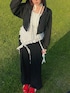 【TOPS】 生地感がとても柔らかく軽く着用できる万能パーカーです。 ショート丈なのでスカートやパンツ、ワンピースともバランスよく合わせていただけますし、スタイルアップも叶うパーカーです⟡.· サイドのギャザーが細見えするシルエットのキャミソールです𖤐´- パーカーを羽織るのもおすすめです! 【PANTS】 ウエストゴムでストレスフリーに履けるスウェットパンツです。パーカーと同じく生地感がとても柔らかいので履き心地抜群^_ー✩ 今回はセットアップで着用しています。