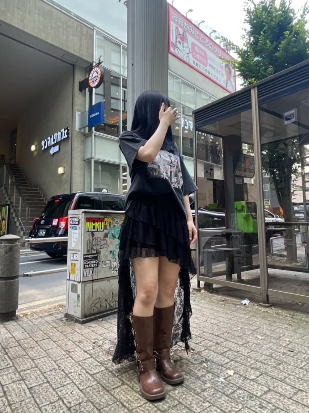 【tops】 オーバーサイズでサラっと着られるので楽ちんです!フォトプリントがお洒落で目を惹きます♪♪ 後ろの首元にもロゴが入ってて可愛い! 【skirt】 動く度にヒラヒラで揺れてかわいい♡ 後ろはロングなので普段ミニスカを履かない人でも挑戦しやすいスカートです! 【shoes】 軽くて疲れにくいエンジニアブーツ!! 今年は夏もブーツコーデがトレンドです⟡.·