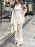 【Tops】夏でも透け感ある羽織は持ってたい♡ ・セットアップで着ても◎、デニムなどに合わせても◎、キャミワンピの羽織としても◎ ・丈感が長めな作りのため、お尻まですっきり隠れるデザインで安心感あります✨ ・立体的なレースのため、高見えも!✨ 【Bottoms】レースパンツでも脚がスラッと見える!? ・裾にたっぷりなフリルが可愛くて、足元まで映えます♡ ・普通に履いても、オーバーサイズのトップスと合わせても可愛い! 【Shoes】ロングボトム履きがちな夏にぴったり のミュール♡ ・スニーカーや、ブーツも可愛いけど、大人っぽく、キレイめに、トレンドっぽくコーデを仕上げたい時にはミュールが1番! ・つま先部分の見える部分もレースアップされていて可愛くて、普段のコーデに足元変えるだけでコーデが垢抜けます✨ ・ヒールが低めなので、比較的歩きやすいです!