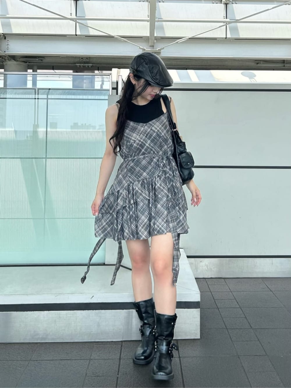 ★onepiece 今トレンドのフリル、チョーカー付きのワンピースです! ウエストに巻くと骨格ストレートさんはメリハリ出て大優勝です!! タンクトップはセットなので、違うインナーに変えて使っても〇 デニムとのレイヤードもおすすめ合わせです! ★boots レザー生地なので夏でもオールシーズン使いやすいブーツです! 横に調整ベルトも付いています〇 ★hunting hat レザーのハンチング帽なのでバッグやブーツと素材感合わせると統一感が出しやすいです!! 調節出来るベルトも横に付いています〇