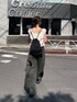 【トップス】 肩を隠したり、肩落としてオフショルで着たり調節することができます。 デコルテ周りスッキリ見せてくれます! 丈感もウエストジャストくらいなのでインしないでちょうど良かったです◎ 【デニム】 今年らしさもあるレオパード柄のデニム! ワイドだけどウエストボタン2段階で調整できるので、腰・おしりはスッキリ見せてくれます!! 少し強めの色、柄のものはトップスを甘いものにしたりシンプルなチビTとかと合わせるとバランス取れます。