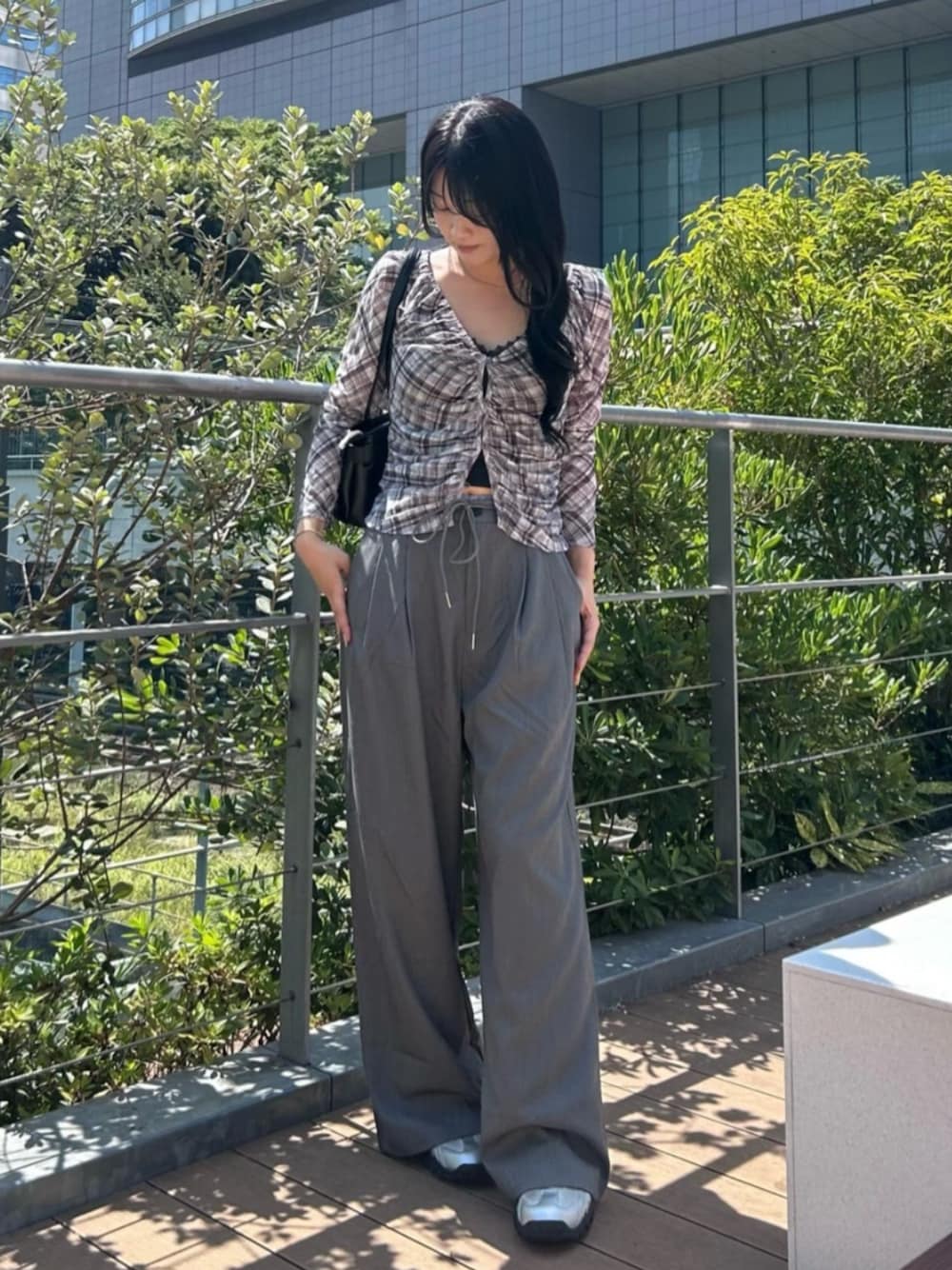 ★tops キャミとセットで1枚でレイヤードが出来ちゃうトップスです! 上のチェックはシアー素材なので涼しいし、前がボタンなので全開けして羽織りとして着ても〇 骨格ストレートさんは上が元々Vになっているので、下もボタンを少し開けると細見えします! ★pants サイズ展開がSとFで159cmでFサイズ少し引きずります! ダボッと抜け感出るので大きめがかわいい!! 少しゆったり履けるのと、ウエストにインナーパンツ付なのでカッチリせずに履けちゃいます! ウエストのインナーパンツは取り外し可能〇 ★bag 500mlのペットボトルが入っちゃう万能バッグ! 持ち手が長めなので肩にかけたり使いやすいです〇 レザー生地でオールシーズン合わせやすい!!