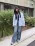 【カジュアルコーデ】 〇シャツ セットアップでも着られるシャツです! セットアップだとパジャマみたいになる、、、って人はデニム合わせがオススメです! キャミソールインナーと合わせれば、まだまだ暑い夏の日も、日焼け対策としても着られます!