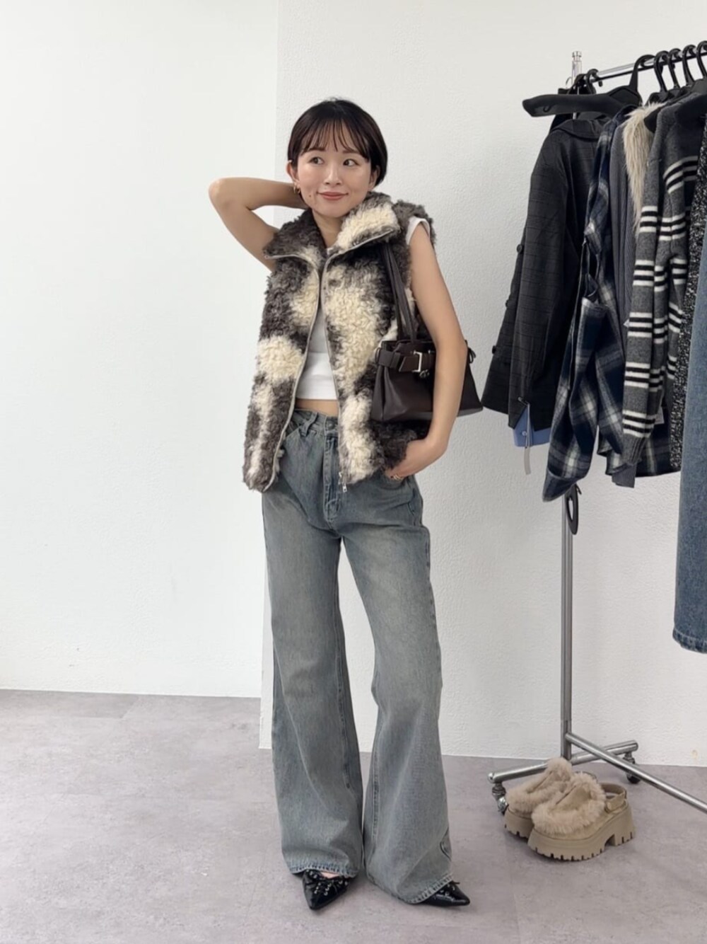 RAYCASSIN_official(RAYCASSIN EC本部)のベスト「ファーベスト」を使ったコーディネート