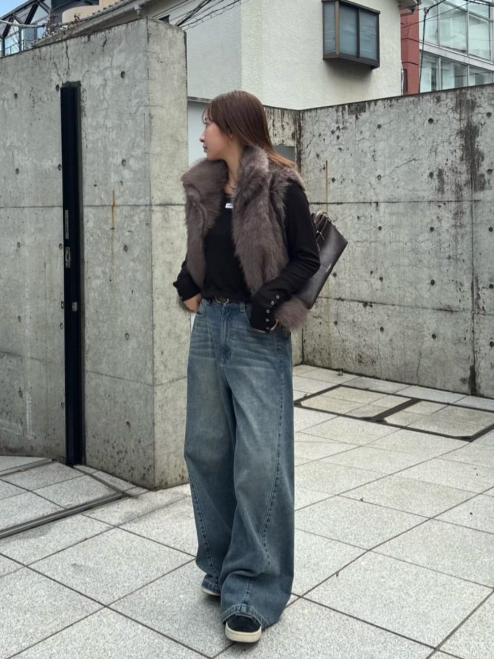 【𝑂𝑈𝑇𝐸𝑅】 ・ボリュームたっぷりなファーだけど、ベストなのと、ダブルジップで、着痩せします〇 ・薄手のタイトめなトップスと合わせて着用するとよりスタイルアップ! ・ルーズなボトムスと合わせても、もたつかないダブルジップが最強です! 【𝑇𝑂𝑃𝑆】 ・薄手トップスは骨スト最強アイテム! ・首元広めで、ワンショルっぽいデザインなので、抜け感が細見えします! ・腕長めなシルエットも、スタイル良く見えるポイントです◎