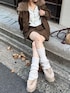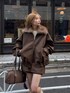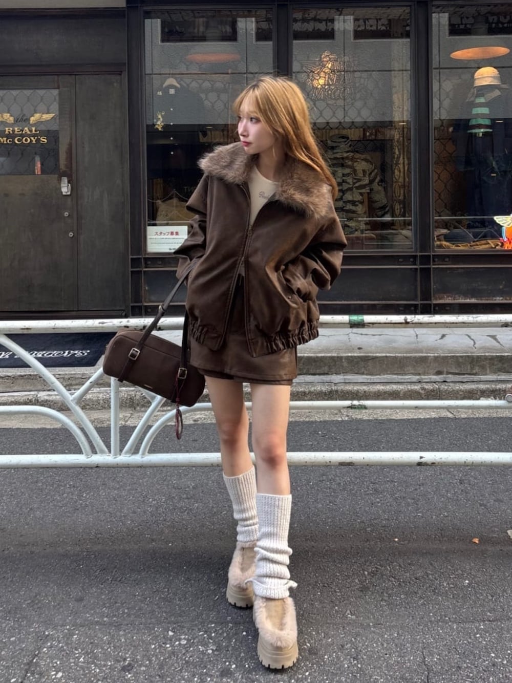 上下セットアップっぽく同素材のものでコーディネート! 推しポイント3つのアウター♡ ・Wジップなので、どんな骨格体型の方もスッキリ見え! ・ファー部分は取り外し可能なので、秋から冬まで長く使える! ・スエードっぽいけどレザーっぽい新鮮な素材方が見え! しかも裾がゴムできゅっと絞られているので、レザーブルゾンでもメンズライクになりすぎず、女っぽく着れるも可愛いポイントです◎