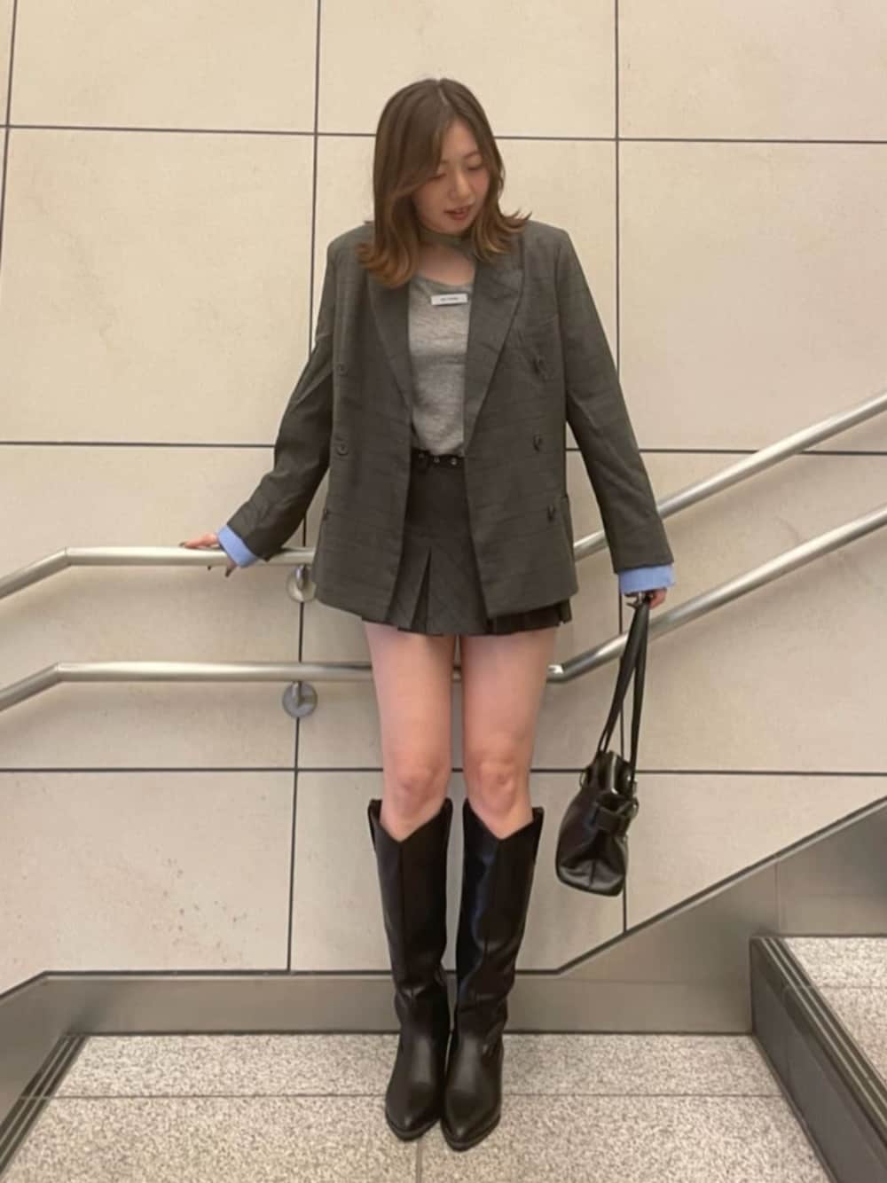 《ジャケット》 ジャケットの時期ってすぐ終わっちゃう印象でしたが、 生地感が分厚くないのと、全体的にゆとりがあるので ニットなども着込める為、9月下旬から真冬前までロングシーズン着れるジャケット! シルエットもオーバーサイズなのに、肩幅ストンと落ちてくれてスッキリ着れます◎ 159cmの私がきて、お尻半分隠れるくらいの丈感です! 《ボトムス》 着用…フリーサイズ パンツの方が少し長めのスカートパンツ! プリーツ幅が広く、裾が広がり過ぎてないので、履くだけで細見えする! ウエストの後ろはゴムになってる為、窮屈さがないのと、 ベルトもついてるので、フィットしてくれて、綺麗に履けます◎ 《シューズ》 着用…M 流行りのウエスタンの形ですが、シンプルデザインなので、色々なテイストの洋服とも相性抜群◎ デニムなどと履いてつま先だけ見せてあげても可愛い◎