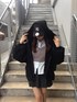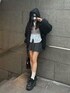 158cm / 骨格ストレート 【アウター】 color : ブラック 大きめフードが可愛いアウター。 リバーシブルなので、ボアアウターとしても着用できるのが嬉しいポイント★ ネクタイ付きのシャツやプリーツスカートと合わせたスクールライクな雰囲気で、程よくカジュアルなコーデにしてみました! 【ボトムス】 color : チャコールグレー シンプルでどんなトップスにも合わせやすいプリーツスカート◎ プリーツのはじまる位置が低いので、広がりが控えめで、腰回りのボリュームが抑えられるのがお気に入りポイント★