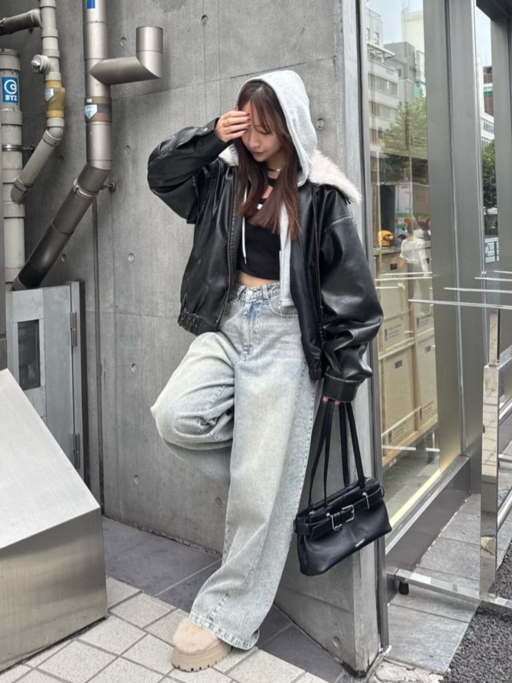 『骨ストのおすすめ着痩せポイントもᝰ✍🏻』 【𝑂𝑈𝑇𝐸𝑅】 ファー襟取り外し可能👌🏻´- ・レザージャケットは即トレンドスタイルになるし、骨ストさんも得意な素材感に、シルエット〇 ・ミニボトムスももちろん可愛いけど、ロングでもバランスよく着られるダブルジップがポイントです! 【𝑆𝐻𝑂𝐸𝑆】 厚底×ファーが可愛すぎるアイテム👢 ・しっかり盛れる厚底で、ボリューム感あるシルエットがロングボトムにも映えるアイテムです〇