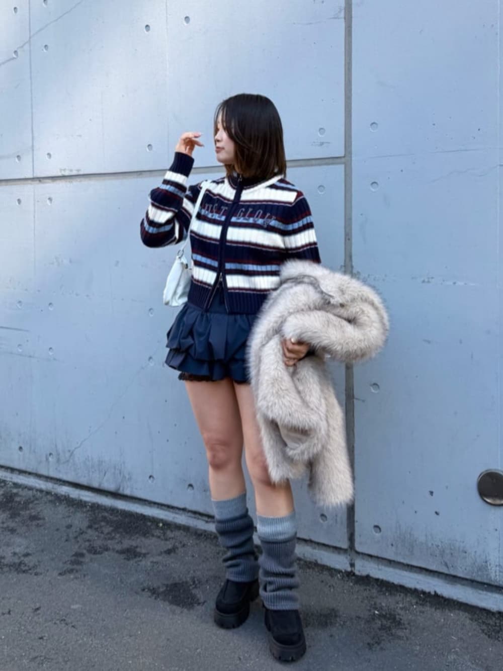 【tops】 ・ダブルジップなのでハイネック苦手な骨ストでも綺麗に着られる◎ ・胸元のロゴが重心少し下げてくれるのもポイント! 【skirt】 ・大人気のレースチラ見せが可愛いスカート♡ ・ボリューミーなのにおしり大きく見えない! 【leg warmer】 ・裾広がりのデザインで靴に被せやすく脚長効果あります◎ ・ボリューミーで誰でも足を細く見せてくれます!