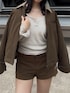 【outer】 春っぽさを先取りできる新作アウター♡ 中綿入りで暖かく軽い着心地です! インナー次第で冬から春まで長く使えるのも嬉しいポイント! 【pants】 ジャケットの色と合わせてセットアップ風に着てみました⭐︎ 脚が長く見えるような絶妙なミニ丈になっているので低身長さんにもおすすめです! 151センチでSサイズ着用しています!