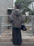 ゆるっとパーカー×デニムなので 中はかっちりしたコンパクトシャツを合わせると全体がすっきりした印象になります◎