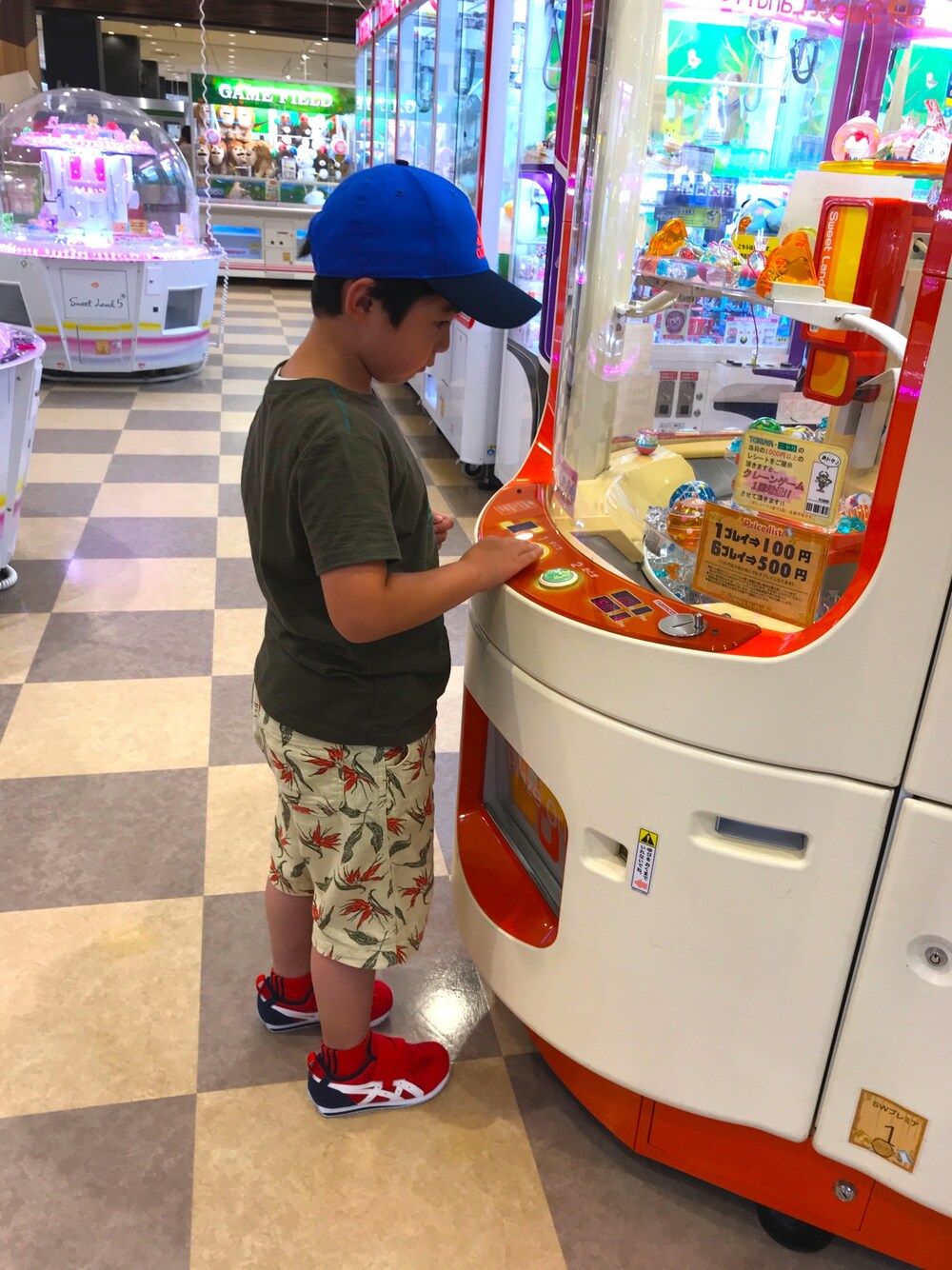 ゲームセンター♬ 最近、クレーンゲームにハマってます😊 新しいasicsの靴、可愛い♡ 息子の足にはasicsが合うみたいですが、 近くのお店にあまり置いてなくて、 いつもネットなのが残念🤔 夏休みが終わってしまった〜