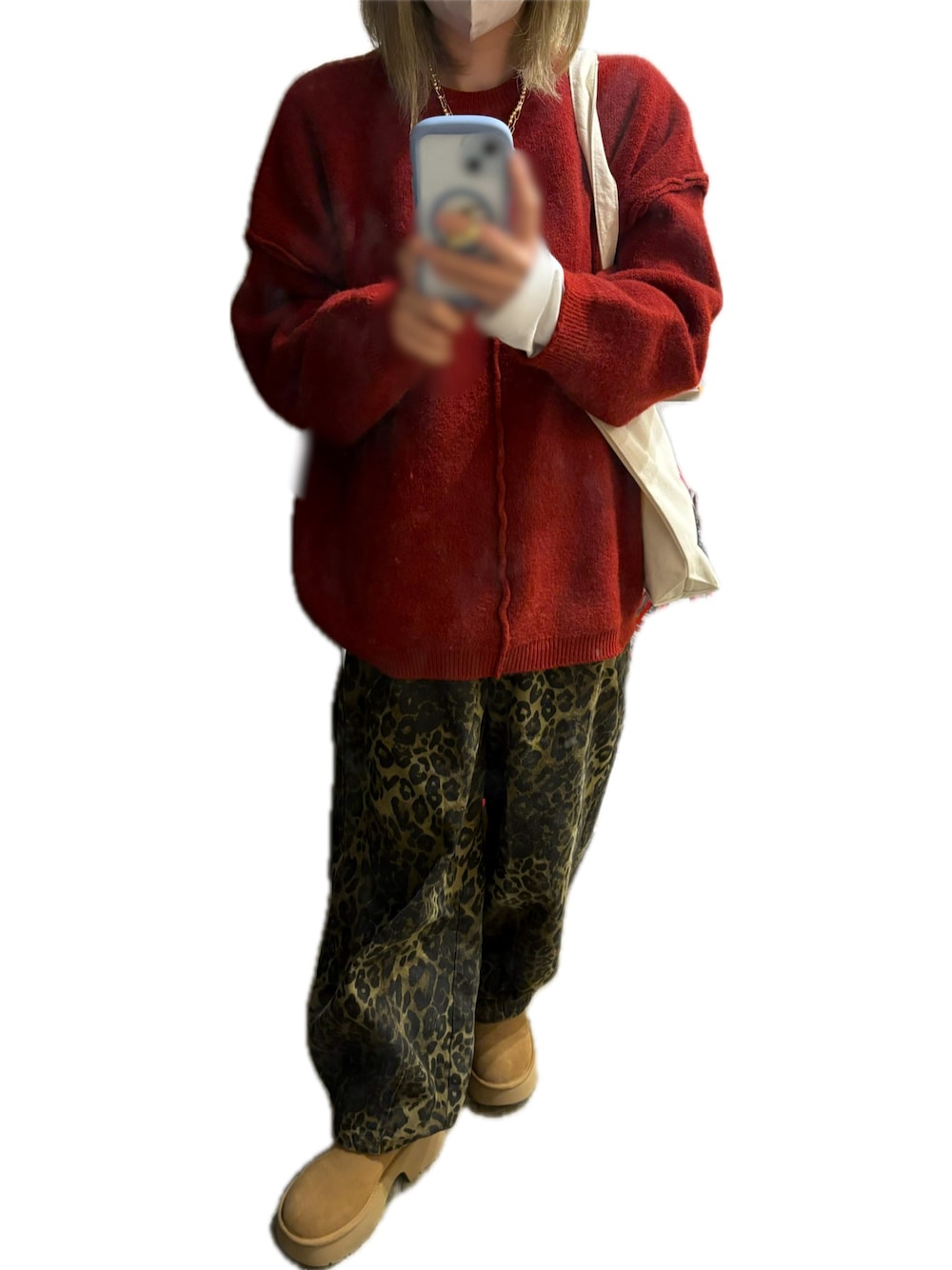 ロンteeが隠れてしまった ビーニーあり TEEN BOOP ▶︎ベーシックルーズニット/RED ▶︎レオパードボリュームパンツ