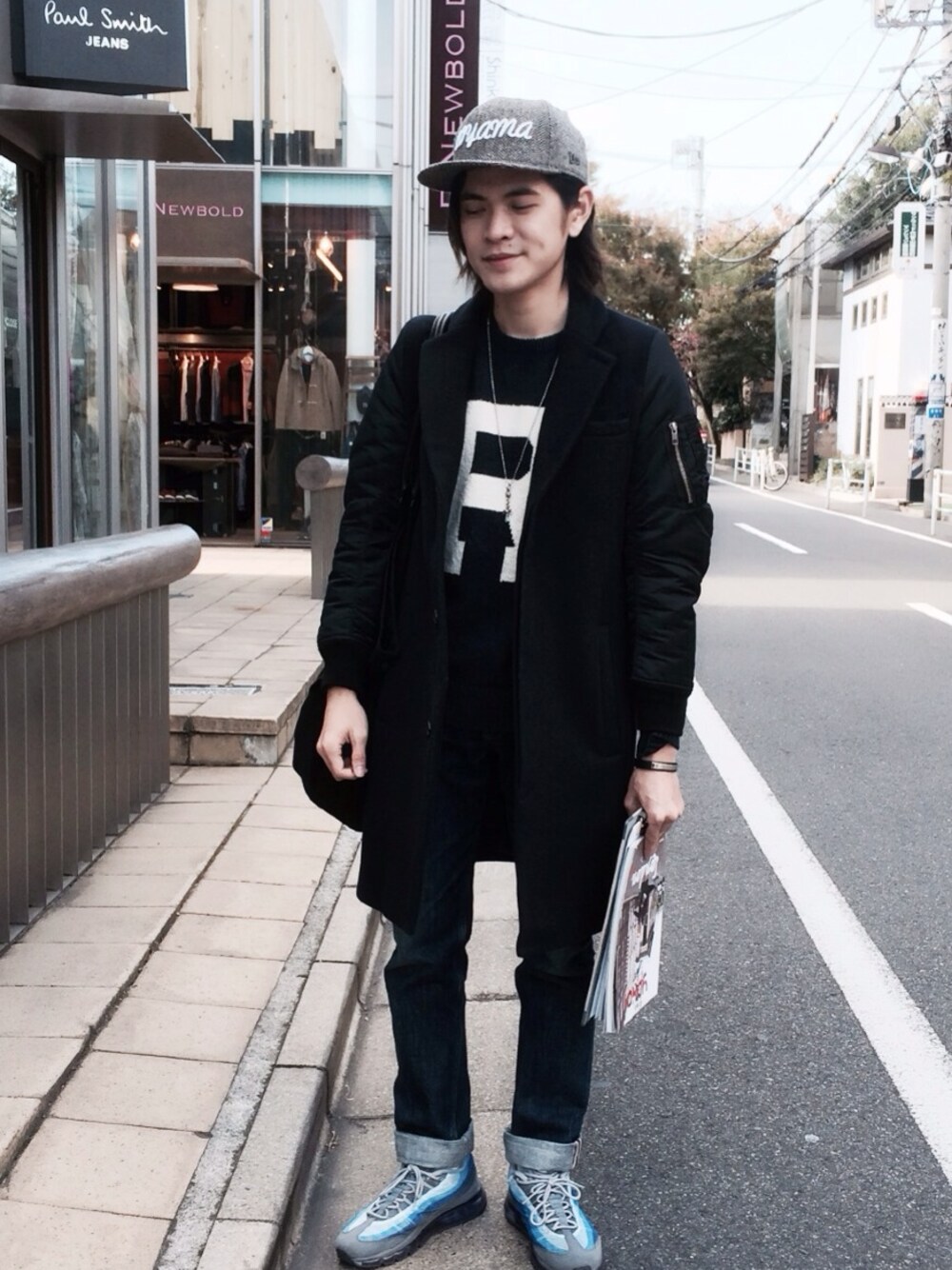 Cap: Mr.Gentleman Coat:G.V.G.V Knit pullover:Mr.Gentleman Denim: A.P.C