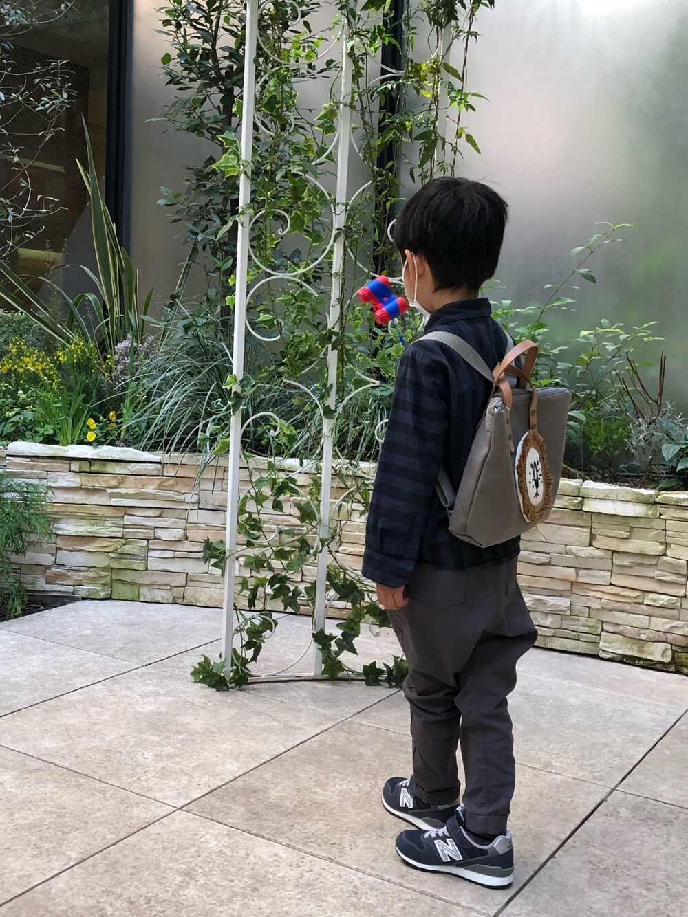 こんばんは! いつも見て頂いてありがとうございます♡ グレー×ネイビーなツートーンコーデ。 大好きなライオンリュックのバックスタイル。 中は恐竜いっぱい…!