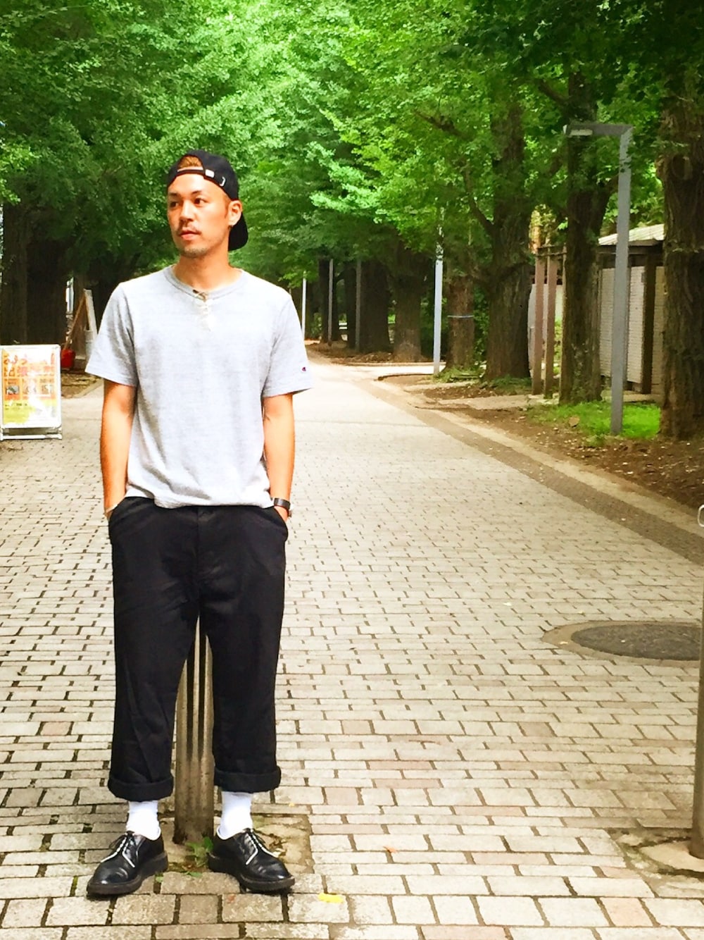 今日も暑いですね☀️ 今日はTシャツにデカパンにレザーシューズで合わせてみました👖👕