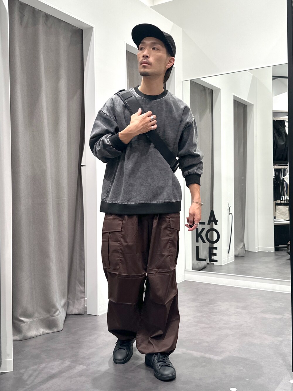 コンパクトなトップスにだぼっと履けるカーゴパンツの組み合わせです👍 落ち着いた色味がお気に入り‼︎