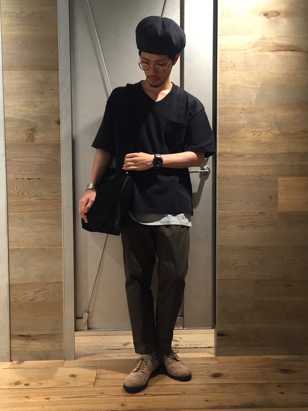 様々なプルオーバーTシャツが増えてきた中 Vネックのトップスもどこか新しい。 どことなく首元、綺麗に見えませんか?見えないですか笑 テーパードの効いたパンツも履き心地抜群。 心なしか脚が長く見えませんか?もういいですね笑 秋に向けて黒やカーキが着たくなるお盆の関田でした。