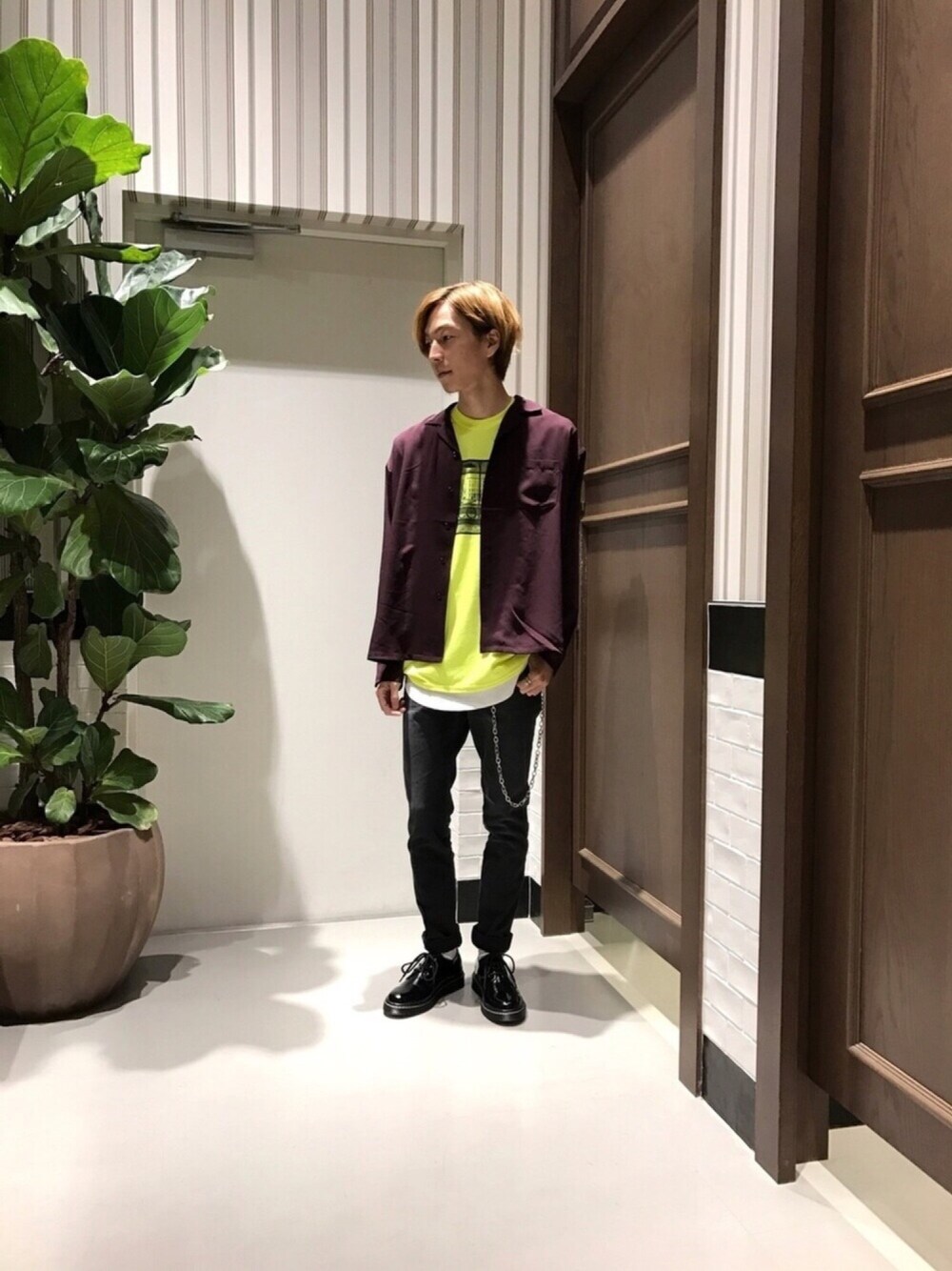 こんにちは☺︎ 今旬のオープンカラーシャツのご紹介です トレンドのワイドパンツと合わせるのも勿論◎ですが、たまにはブラックデニムのスキニーパンツでクールに着こなすのもかっこいいと思います! トップスはインナーの蛍光色が浮きすぎないように紫色のシャツで合わせてます ぜひ参考にしてみて下さい☆★