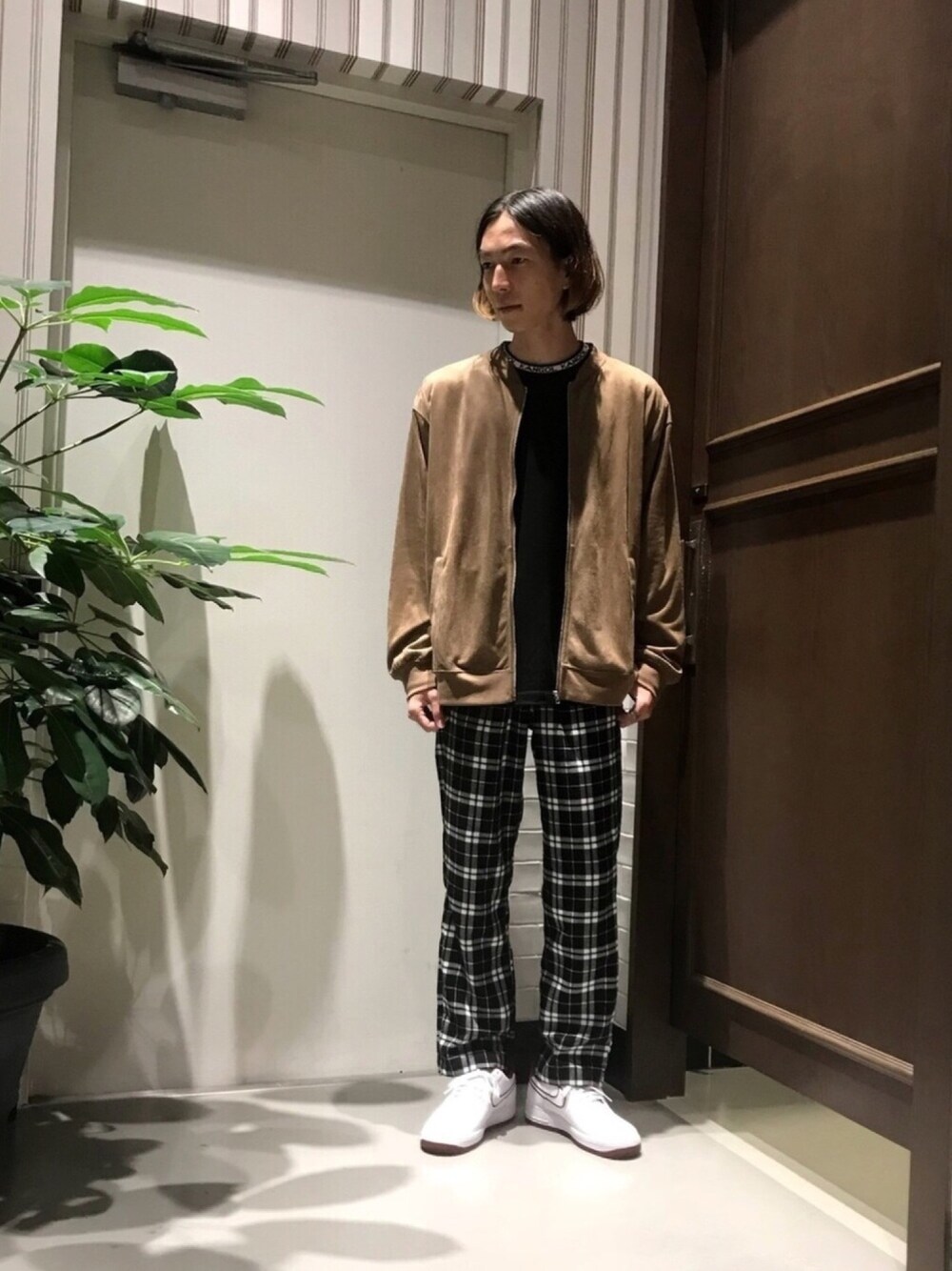 こんにちは☺︎ いつもご閲覧いただきありがとうございます。 シックなストリートコーデのご紹介です。 トップもボトムもルーズすぎないサイズ感がポイントです。 また、チェック柄やKANGOL、AIR FORCE1といった90年代のファッションのキーワードを取り入れたスタイルにしています。 是非参考にしてみてください✴︎