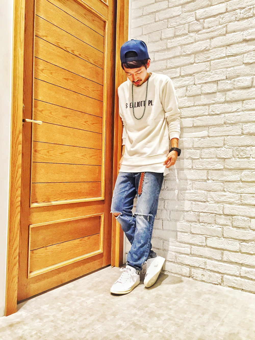 みなさんこんにちは! 少し間が空いてしまいました(´Д` ) おひさしぶりーふです! 最近はダーツにはまってマイダーツを買ってしまい、友達と投げまくっておりました! そんな中勢いでスタンスミスを購入してしまいました! あーお金が… そんなスタンスミスを使って少し明るいカラーリングでのだっちょにしては珍しいスタイリングかもしれません! コーンミルズ社のダメージデニム×白のスウェットでカジュアルに合わせました! キャップで少しスポーティに! 着用してるスウェットは全部で4色展開となっております! 裏起毛なのでこれからの時期にぴったりですね! 1枚で着ても、シャツの上に着ても、アウターの下に着てもオッケーです! 是非ともチェックしてみて下さい! よろしくお願いします! それではまた明日お会いしましょう! いぇあ!