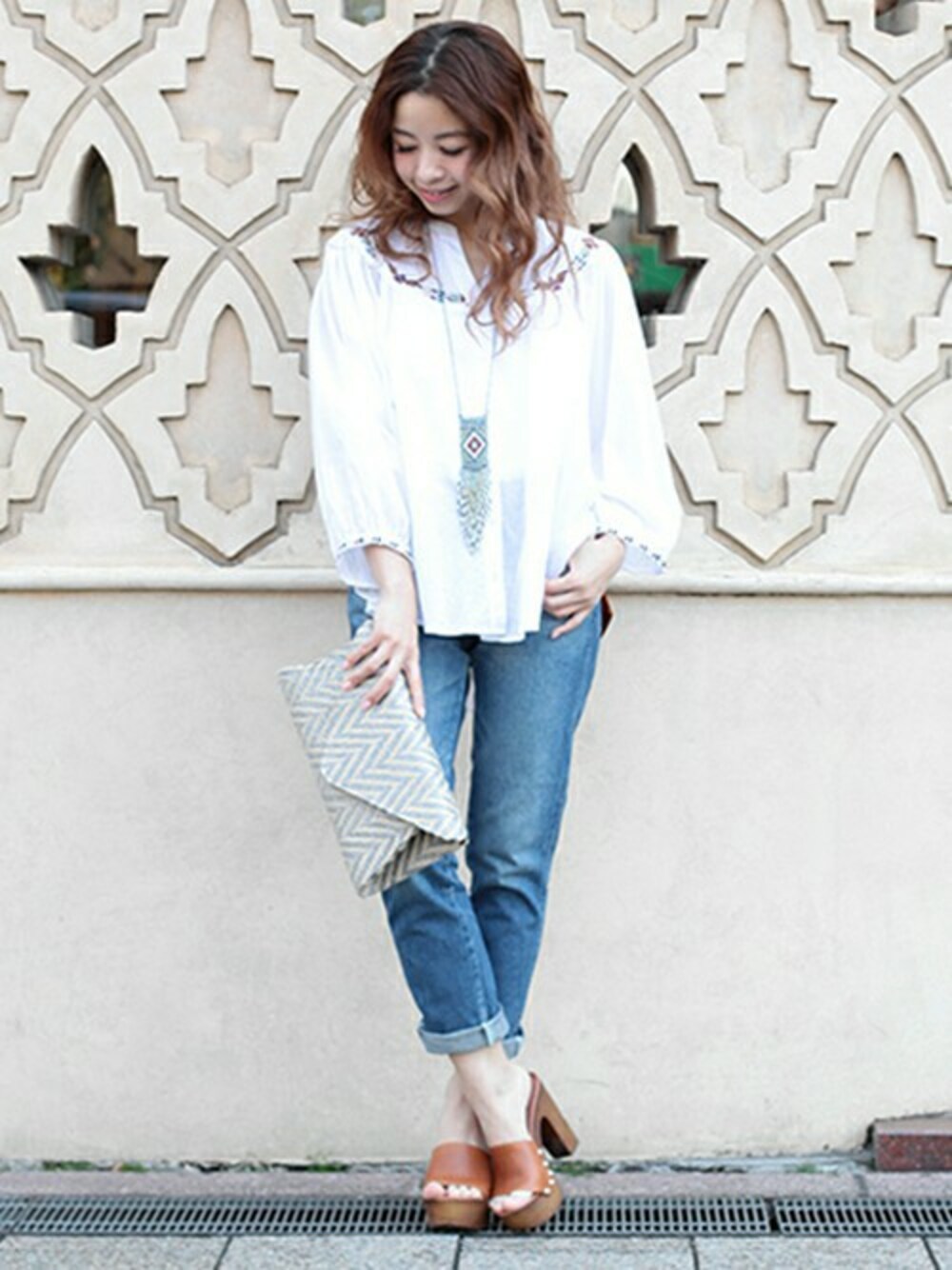 ネイティブな刺繍がポイントのブラウスはHLAADA とのコラボレーションアイテム!クロップド丈なので、ボーイズやバギーデニムにぴったりです。デニムは裾をロールアップして素肌を見せるとナチュラルでヘルシーな印象に。