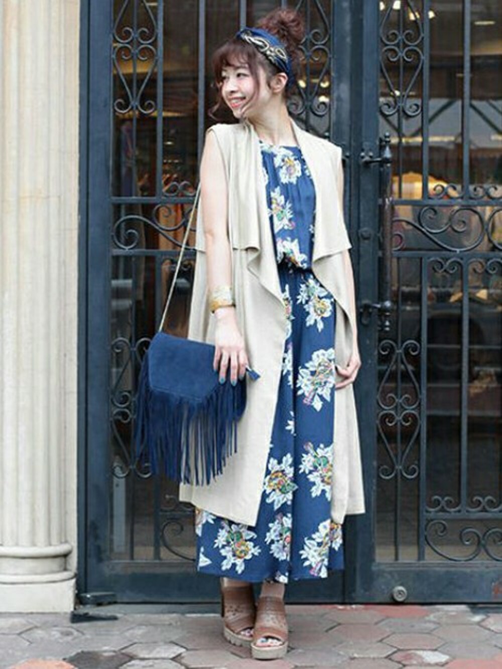1枚で今年らしいスタイルがキマるボタニカル柄コンビネゾンコーデ。甘くなり過ぎない柄なので幅広い年齢の方に着て頂けるコーデになっています。髪をアレンジする事でリゾートな雰囲気にもなるこれからの季節にオススメです!
