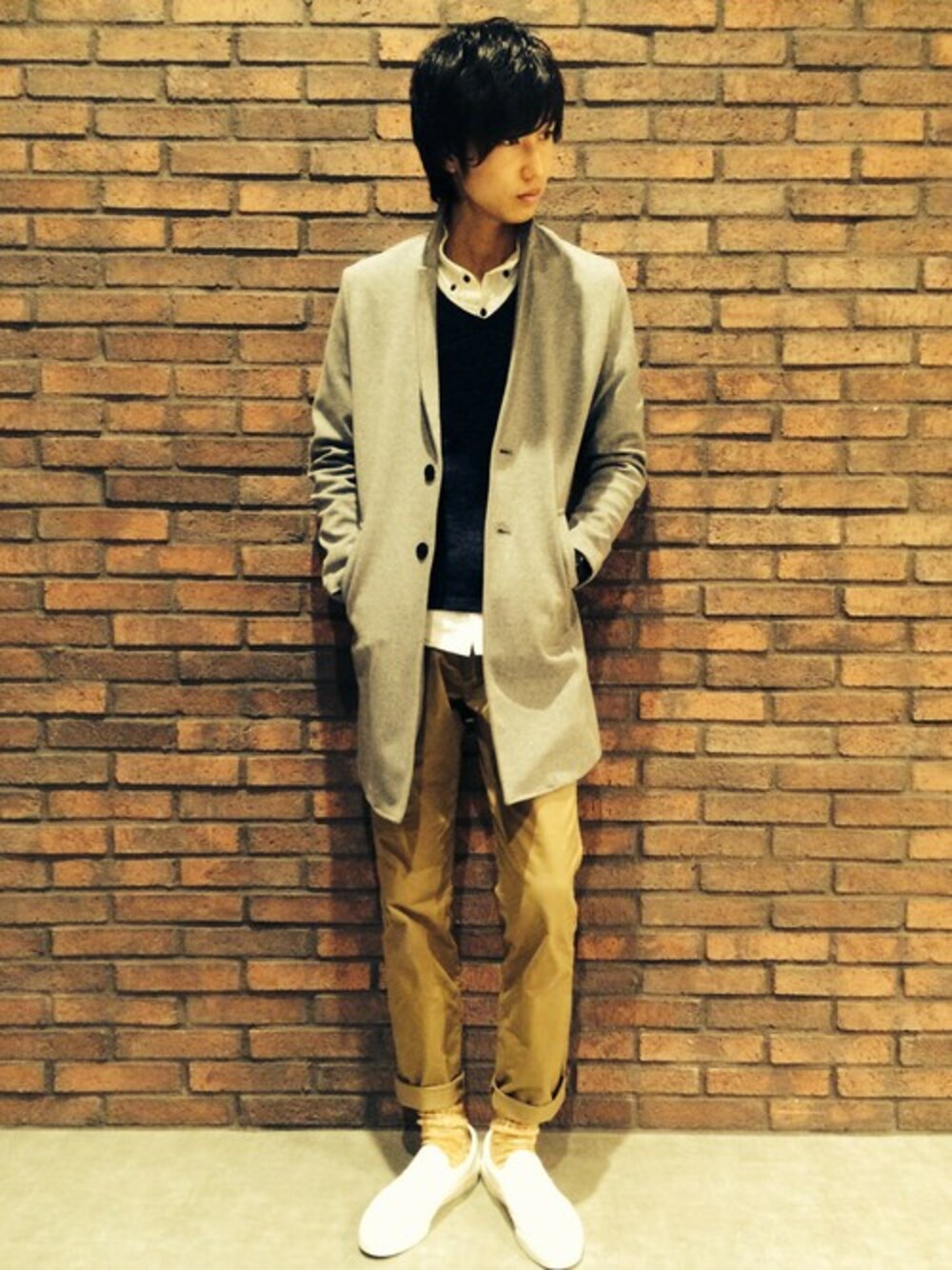 いつもご閲覧ありがとうございます!(^o^) カット素材のチェスターコートを使ったコーデです!! これからの季節にもピッタリな明るめに色味をまとめてみました。 是非お試し下さい^o^