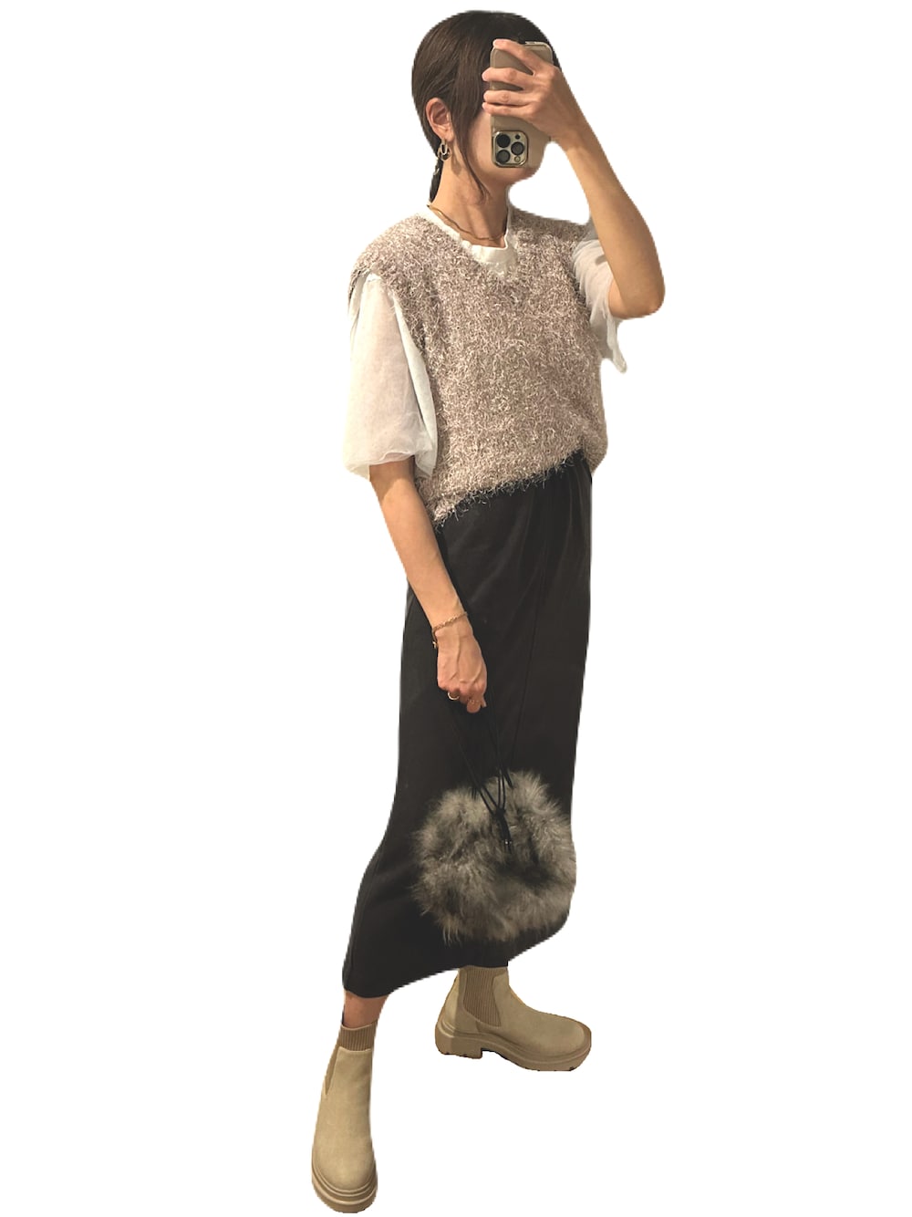 rbgmemoryのベスト「ダンスフェザーVネックベスト」を使ったコーディネート