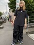 ポンプをメインにしたコーディネートを組んでみました。派手な紫カラーもブラックコーデとなら相性◎!