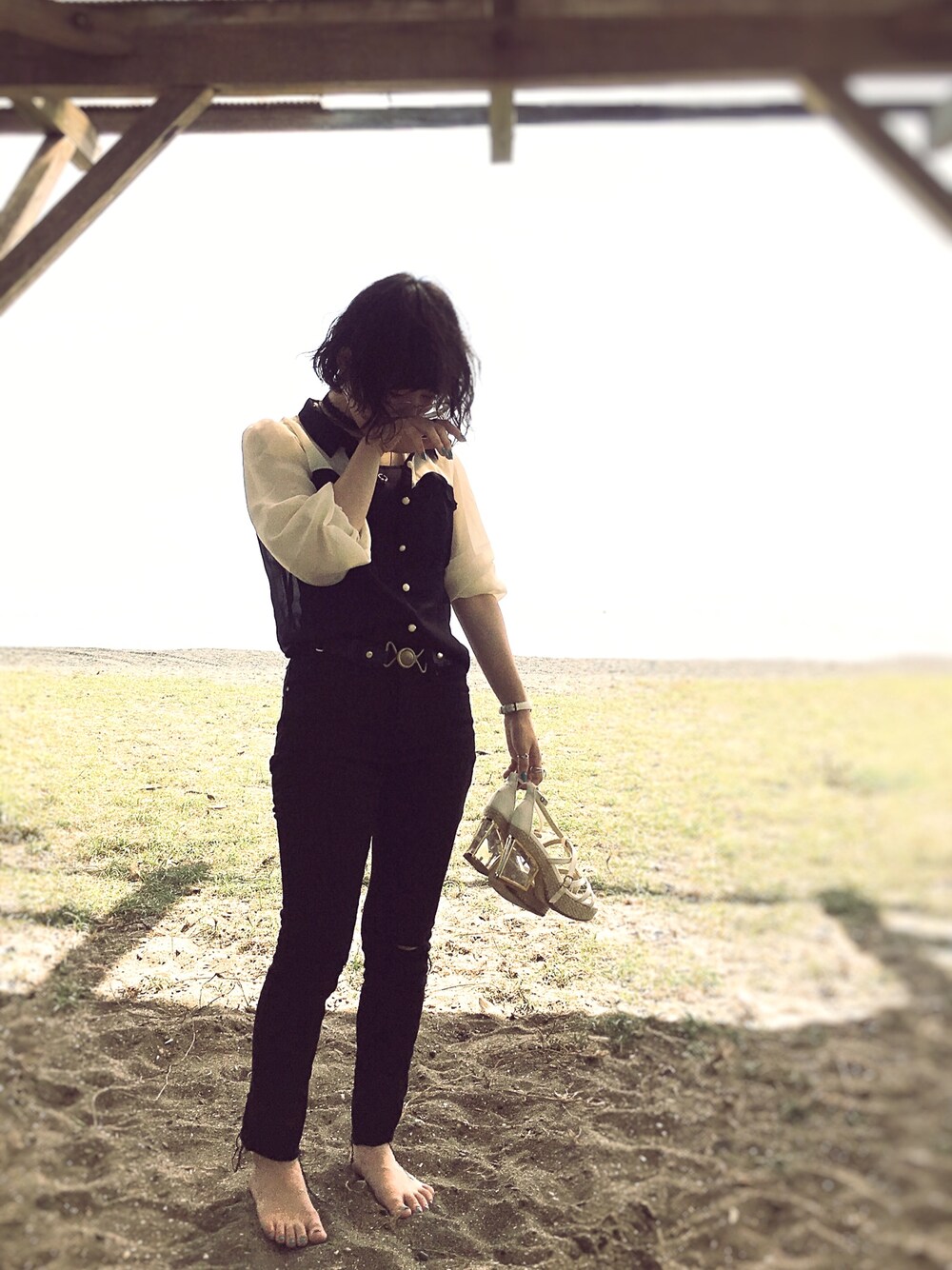 海行って花火見てきました。 今日も今日とて黒いです。