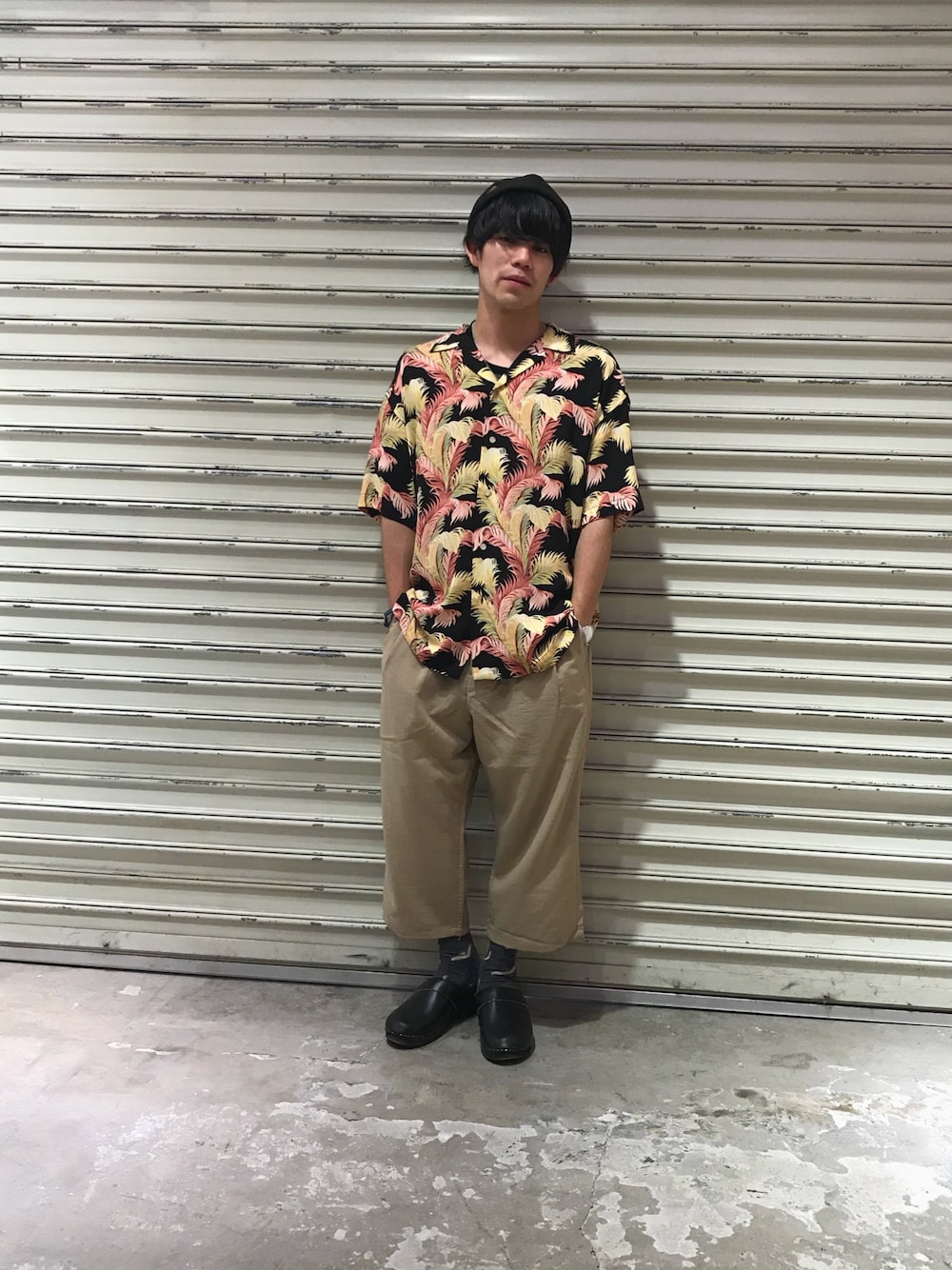 今回は夏らしい柄のアロハシャツが主役のコーディネートです。 昔から夏の定番のアロハシャツですが、色使いや、シルエットは今年らしく合わせてみました。