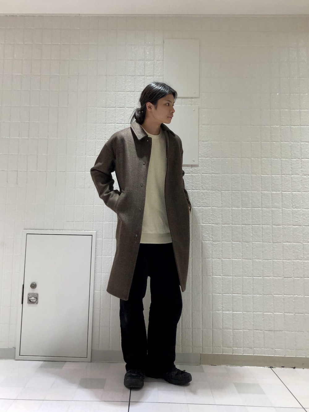 鈴木隆文のステンカラーコート「柄ステンカラーコート/832471」を使ったコーディネート