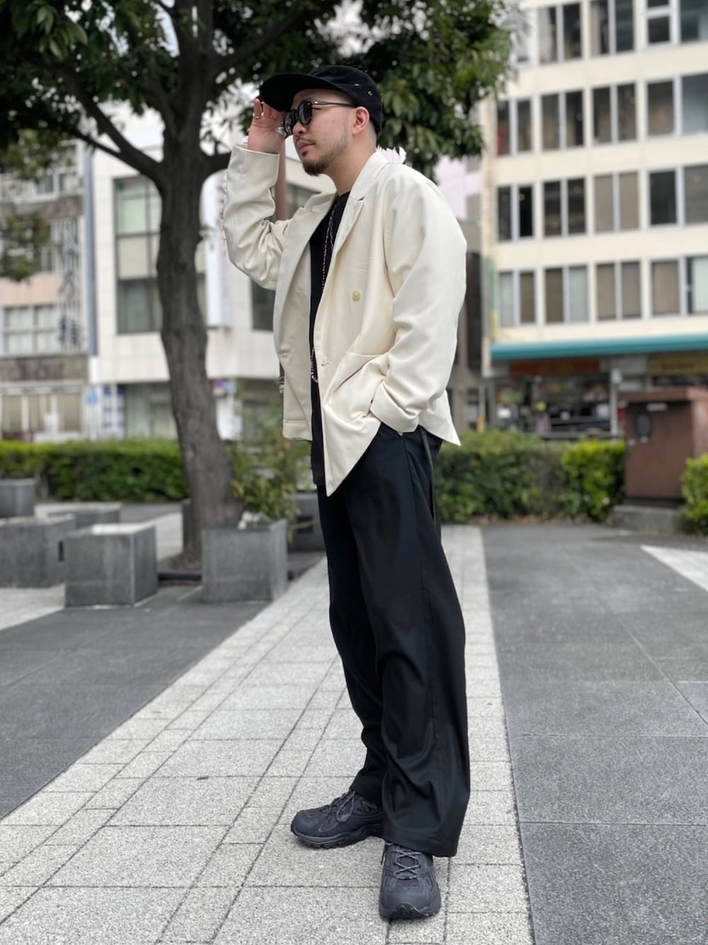 春らしいホワイトカラーのテーラードジャケットをスポーツライクに。 キレイなアイテムにはあえてスニーカーを◎