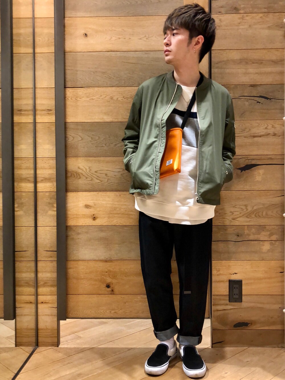 いつもご覧いただきありがとうございます! 金沢フォーラス店のはらだです! 日中は暖かくなってきましたけど、朝晩はまだ少し冷えますよね、、 そんな時期にはスウェットに軽めのアウターを合わせるのがオススメです! デニムにMA-1を合わせたシンプルなスタイルですが、ボディのデザインやサコッシュのオレンジがポイントになっています! 初挑戦の色は小物で差し色をすると使いやすいですよ◎ ぜひ店頭にもいらしてください! お待ちしております!