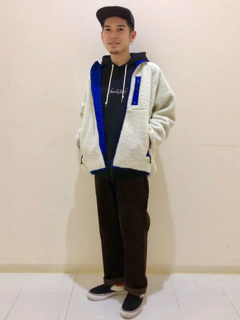 いつもご覧いただきありがとうございます! 金沢フォーラス店のはらだです! 寒くなってきましたね、、 トレンドのボアにコーデュロイの温かみのあるスタイルです!笑 全体的に暗くなりがちな秋冬のスタイルに白のボアでアクセントをつけました! 差し色でブルーがあるので、爽やかな印象にもなります! 一枚羽織るだけで今年らしく温かく着られるのでオススメです! ぜひ店頭にもいらしてください! お待ちしております!